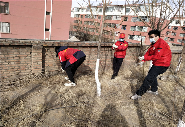 在前期的摸排中分局志愿者發(fā)現(xiàn),小區(qū)周?chē)恍┙ㄖ?、枯?shù)干無(wú)任何覆蓋大面積堆放,不僅占道嚴(yán)重,影響群眾通行;并且四周空曠,極易產(chǎn)生揚(yáng)塵污染,給小區(qū)居民生活帶來(lái)諸多不便?;顒?dòng)中,分局志愿者對(duì)小區(qū)周?chē)目葜埬具M(jìn)行撿拾,枯枝中的垃圾單獨(dú)拾出,并集中進(jìn)行整理銷(xiāo)毀。之后又走進(jìn)小區(qū)內(nèi),對(duì)小區(qū)綠化帶內(nèi)進(jìn)行了全面清理,打掃了車(chē)棚衛(wèi)生死角,并將居民隨意停放的自行車(chē)、電動(dòng)車(chē)擺放整齊,對(duì)小區(qū)顯著位置張貼的小廣告進(jìn)行了清理。分局的志愿者們互相配合,紛紛發(fā)揚(yáng)不怕臟、不怕累的精神,分工明確,組織有序,現(xiàn)場(chǎng)呈現(xiàn)一片熱火朝天的勞動(dòng)景象,每個(gè)人臉上都洋溢著勞動(dòng)的喜悅。經(jīng)過(guò)大家的努力,小區(qū)的環(huán)境衛(wèi)生有了明顯改善,受到了小區(qū)居民的好評(píng)。今日還有分局職工參與了我市“我?guī)湍?rdquo;學(xué)雷鋒志愿服務(wù)集中示范活動(dòng)暨“萬(wàn)名機(jī)關(guān)干部下社區(qū)”志愿服務(wù)活動(dòng)啟動(dòng)儀式,在這樣一個(gè)特殊的日子里與更多的志愿者通過(guò)自己的行動(dòng)助力志愿服務(wù)工作。