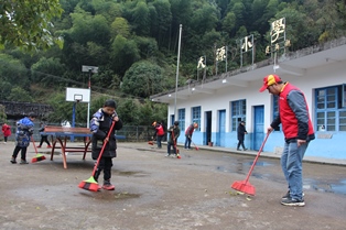 觀影結(jié)束后,隊(duì)員們帶領(lǐng)孩子們開展義務(wù)清潔鄉(xiāng)村環(huán)境活動(dòng),大家清掃了校園衛(wèi)生后,紛紛沿著村內(nèi)主要干道、巷道開始清理垃圾,通過一個(gè)小時(shí)的努力,將道路上的煙頭、塑料袋、枝葉等垃圾全部清掃干凈,整個(gè)鄉(xiāng)村煥然一新。