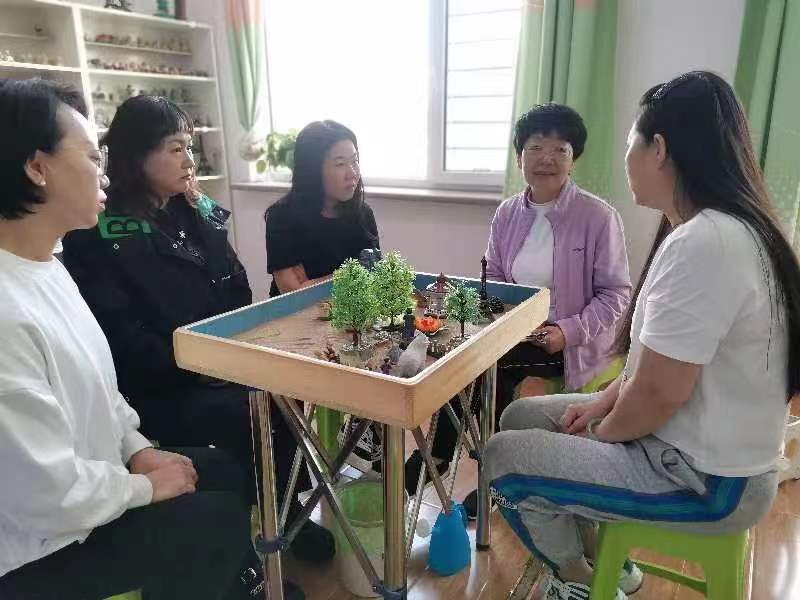 沙盤游戲是通過(guò)沙、沙盤以及有關(guān)人或物的微縮模型來(lái)進(jìn)行心理治療與心理輔導(dǎo)的手段?;顒?dòng)開(kāi)始前,沙盤輔導(dǎo)師將大家分成兩組,以小組形式進(jìn)行沙盤游戲,每個(gè)組員輪流選取沙具,每輪只能選一件,共六輪,選完按照自己心里的意愿組合擺放。每輪擺放完畢小組成員描述自己對(duì)沙盤世界的感受,其他組員則根據(jù)擺放來(lái)分析投射的故事。