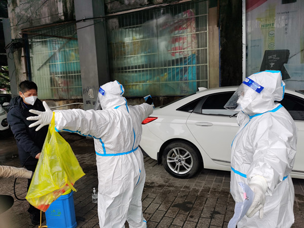 “您好,您需要的菜品我們已經(jīng)買回來了,放在您的家門口,您方便了出來取一下。”這是青年黨員覃婕這些天來重復(fù)最多的話,在中興小區(qū)還有很多和覃婕一樣的“青春面孔”,他們主動(dòng)充當(dāng)小區(qū)居民的跑腿員,為大家采買送遞,正是因?yàn)橛辛怂麄兊呐芮芭芎?,居民們的基本生活物資才得以正常供應(yīng),才能夠更安心的“宅”在家里,說起他們,社區(qū)和居民都是一片褒獎(jiǎng)之詞。