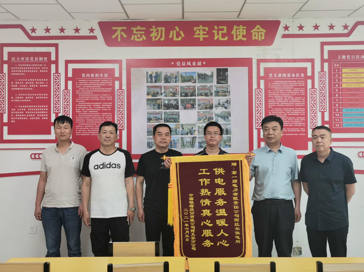 中國鐵塔阿克蘇分公司負責(zé)人蔣羽將一面寫著“供電服務(wù)溫暖人心·工作熱情真心服務(wù)”的錦旗送到一師電力阿拉爾供電所負責(zé)人手中,對他們優(yōu)質(zhì)、高效的供電服務(wù)贊不絕口。