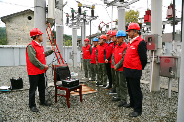 中國電力網(wǎng)訊 1月18日,在35千伏洞口變電站工作現(xiàn)場,國網(wǎng)樂安縣供電公司營銷黨支部組織各供電所營銷副所長對洞楓線發(fā)電上網(wǎng)計量裝置進行現(xiàn)場校驗。這是該公司全面加強黨建引領,通過“黨建+”現(xiàn)場培訓提升隊伍素質(zhì)的一個場景。