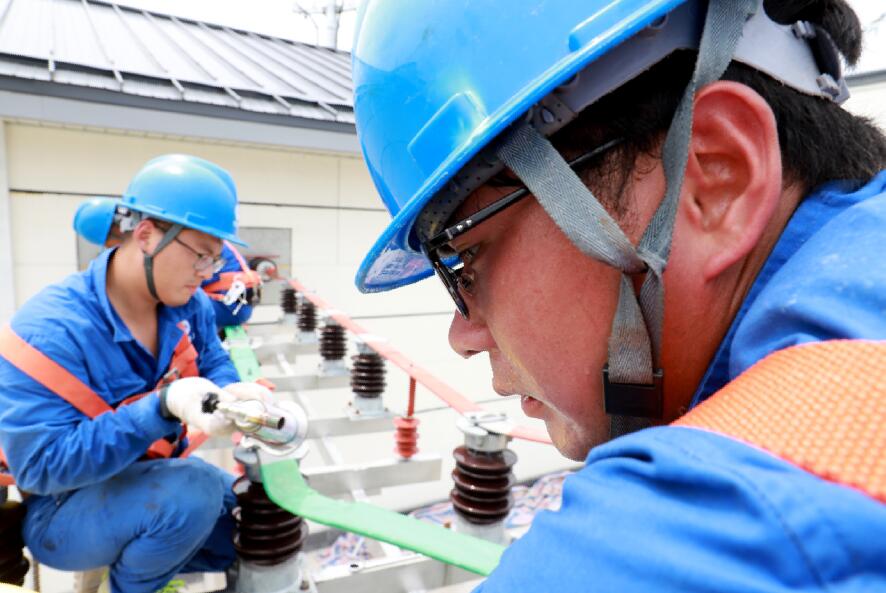中國(guó)電力網(wǎng)訊 8月12日,安徽省定遠(yuǎn)縣二龍回族鄉(xiāng)中湯村,國(guó)網(wǎng)定遠(yuǎn)縣供電公司新建35千伏二龍變電站項(xiàng)目正在緊張施工中。當(dāng)日,攝氏33°高溫下,2臺(tái)主變壓器臺(tái)上,瓦斯噴燈的火苗呼呼作響,高空作業(yè)人員渾身汗水濕透,正在對(duì)母線鋁排進(jìn)行絕緣化處理。變電站控制室內(nèi),專(zhuān)業(yè)技術(shù)人員二次側(cè)安裝調(diào)試正在同步進(jìn)行。