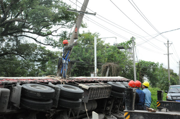 中國電力網(wǎng)訊 9月19日上午9點20分,由于一場意外的交通事故,10千伏夢谷線76#桿被一輛側(cè)翻的貨車壓倒。而10千伏夢谷線主要承擔(dān)廣昌縣夢谷電商創(chuàng)業(yè)園以及附近答田村數(shù)個村小組的供電任務(wù),情況緊急,國網(wǎng)廣昌縣供電公司甘竹供電所在接到搶修工單的第一時間立即啟動應(yīng)急搶修預(yù)案,組織了一只數(shù)十人的搶修隊伍前往事故發(fā)生地點,并在趕往現(xiàn)場的同時,安排相關(guān)臺區(qū)管理員做好停電用戶解釋工作。