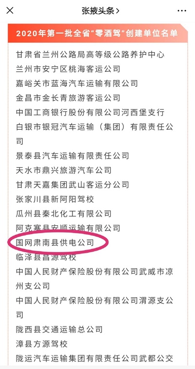 國(guó)網(wǎng)張掖肅南縣供電公司榮獲2020年甘肅省第一批“零酒駕”創(chuàng)建單位