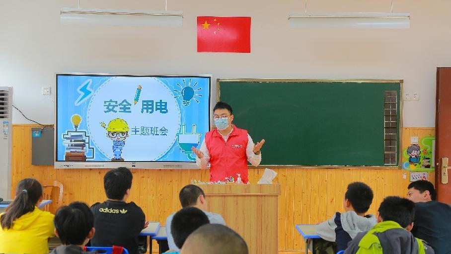國網(wǎng)浙江諸暨供電公司志愿者在諸暨市東和鄉(xiāng)初中電力愛心教室,為同學(xué)們科普安全用電知識