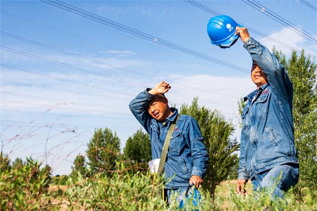 國網(wǎng)蒙東通遼供電公司運(yùn)維人員冒著高溫巡檢66千伏奈寶線。