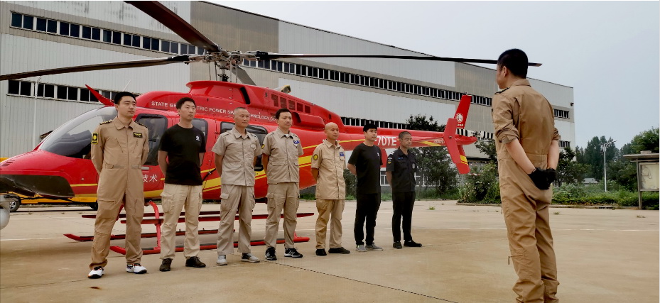 國網(wǎng)空間技術公司輕型直升機機組在河北保定定興臨時起降點做飛往涿州的準備。(師維藝)