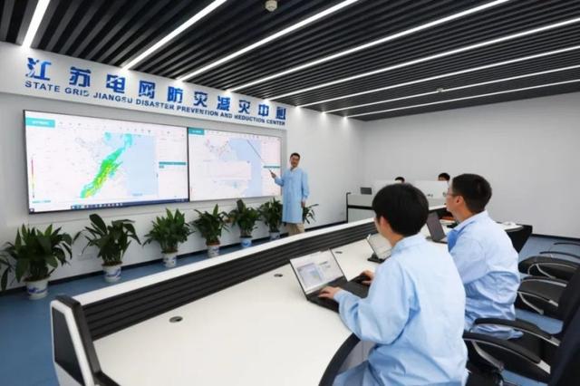 江蘇電網(wǎng)防災(zāi)減災(zāi)中心技術(shù)人員對(duì)氣象預(yù)警技術(shù)進(jìn)行研討。