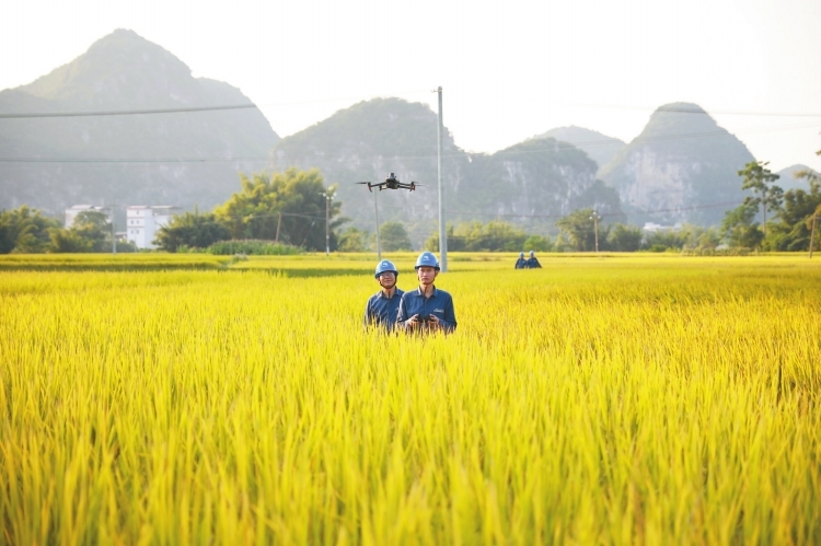 10月11日,廣西電網(wǎng)公司南寧上林供電局工作人員加強(qiáng)對(duì)稻田相關(guān)供電線路及設(shè)備的特殊巡視。 黃靖雯 攝