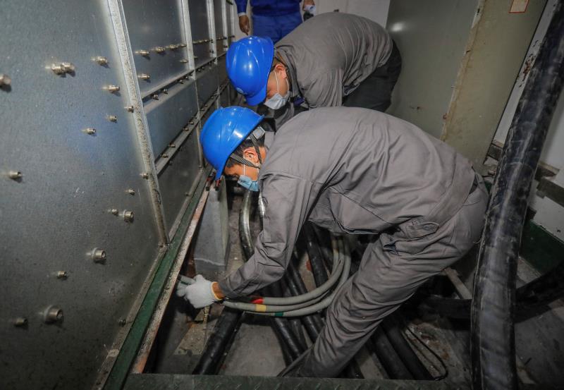 “門診明天6時開始工作,我們必須在凌晨4時前通電,保證門診部明天正常運轉!” 工程負責人張軍現(xiàn)場號令。30日晚,20余名電力員工在李惠利醫(yī)院10千伏環(huán)網站周圍拉起安全施工防護欄和警界線,一場10千伏新電力用電設備投運施工在星夜展開。老配電房電纜溝窄小,2名員工只能側著身把舊導線用力拉出來,再把新電纜放進去。新配電箱安裝時,供電員工只能跪著安裝碗口粗的銅電纜,施工難度非常大。而供電員工心理明白,這是一場與時間賽跑、為生命加速的工程。