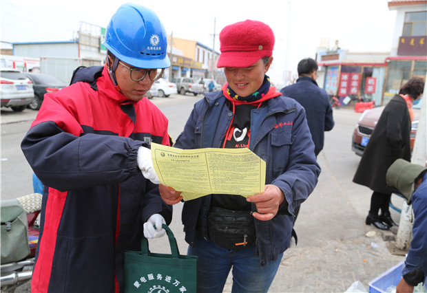 在活動(dòng)現(xiàn)場(chǎng),工作人員通過(guò)設(shè)立展板、發(fā)放宣傳材料、現(xiàn)場(chǎng)答疑等方式,走訪(fǎng)商戶(hù)、居民,向用戶(hù)介紹供電企業(yè)優(yōu)化營(yíng)商環(huán)境舉措、電價(jià)政策、“三零三省”服務(wù)等內(nèi)容,并現(xiàn)場(chǎng)指導(dǎo)客戶(hù)通過(guò)手機(jī)使用“蒙電e家”APP辦理相關(guān)業(yè)務(wù)。每到一處,分局員工都十分耐心的宣傳講解日常生活中的安全用電常識(shí)和常見(jiàn)的用戶(hù)側(cè)用電故障發(fā)生原因和處理方式。對(duì)安裝新式智能電能表的用戶(hù),詳細(xì)講解了電表的充值方式、使用方法和注意事項(xiàng)等。此外,分局員工在走進(jìn)臨街商鋪時(shí),還向商業(yè)用戶(hù)宣貫一般工商業(yè)降價(jià)政策和疫情期間電價(jià)優(yōu)惠政策、降價(jià)措施及時(shí)限;向用戶(hù)講解了《電力設(shè)施保護(hù)條例》《電力法》等相關(guān)規(guī)定。此次宣傳活動(dòng),共走訪(fǎng)了居民和商戶(hù)近百戶(hù),發(fā)放和張貼安全用電、降價(jià)信息等宣傳圖冊(cè)一百余冊(cè)。