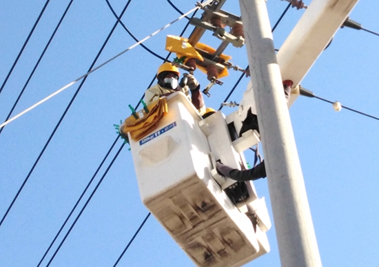 中國電力網(wǎng)訊 1月7日,濰坊壽光地區(qū)氣溫驟降至零下19攝氏度,國網(wǎng)壽光市供電公司帶電作業(yè)人員在10千伏金華線19號桿,為臺頭鎮(zhèn)某防水企業(yè)進行更換隔離刀閘作業(yè),及時消除線路缺陷,保障企業(yè)客戶寒潮期間安全可靠用電。