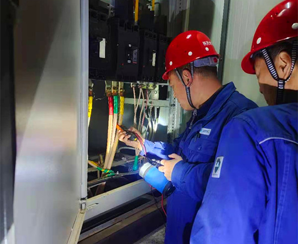 中國電力網(wǎng)訊 3月26日晚,朦朧夜色中,一群頭戴安全帽,身穿藍色地電工裝的人員出現(xiàn)在城南專變客戶的計量裝置旁邊,在強手電光的照耀下,大家相互配合、緊密協(xié)作,檢查每根接線,用鉗型電流表測量電流,做好相關記錄......。