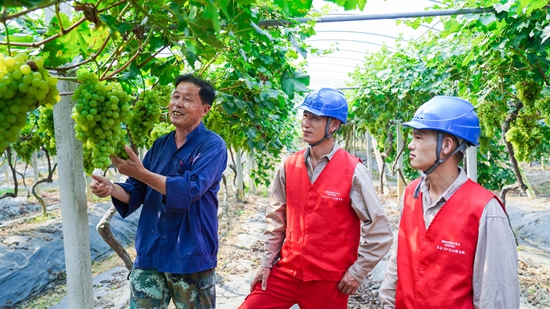 本網(wǎng)訊 “多虧了供電公司提前為我們安裝變壓器、架設(shè)線路,讓我們的冷庫和灌溉系統(tǒng)全天候工作,葡萄才能獲得大豐收。”8月23日,遞鋪街道熊出沒葡萄園內(nèi)的農(nóng)戶指著一串串青翠欲滴的葡萄對前來檢修用電的紅船共產(chǎn)黨員服務(wù)隊激動地說道。