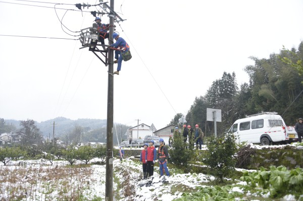 在一些鄉(xiāng)鎮(zhèn)山區(qū),由于海拔較高,幾乎所有花草樹木、房屋良田都在一夜之間白了頭。被積雪壓斷的樹竹、壓彎的毛竹等造成山區(qū)、鄉(xiāng)鎮(zhèn)多處電力設施受損,國網(wǎng)撫州市南豐縣供電公司迅速啟動應急響應,多方聯(lián)動,組織搶修人員對受冰雪影響的故障線路進行全面巡視和應急搶修,爭取在最短時間內(nèi)恢復電力供應。