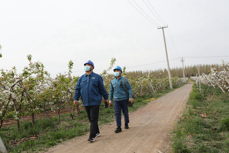 又是一年春草綠,朵朵梨花別樣鮮。遠(yuǎn)遠(yuǎn)望去,兩個(gè)“國(guó)網(wǎng)綠”穿梭在白色的花海中,描繪出一幅幅電力足、產(chǎn)業(yè)興、農(nóng)戶豐的美好花園。