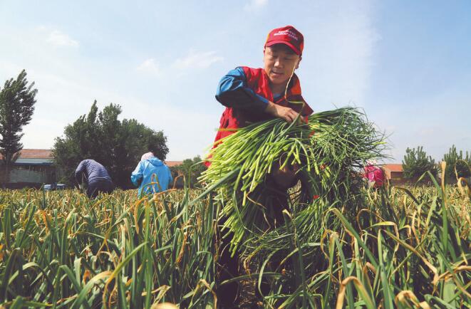 2017年年初,白橋鎮(zhèn)引入“龍頭企業(yè)+基地+合作社+農(nóng)戶”的發(fā)展模式。大蒜深加工龍頭企業(yè)與村里的合作社、大蒜種植大戶簽訂協(xié)議,保價(jià)收購(gòu)大蒜,并將大蒜加工成價(jià)值更高、便于運(yùn)輸和儲(chǔ)存的產(chǎn)品,讓當(dāng)?shù)胤N植戶增收。