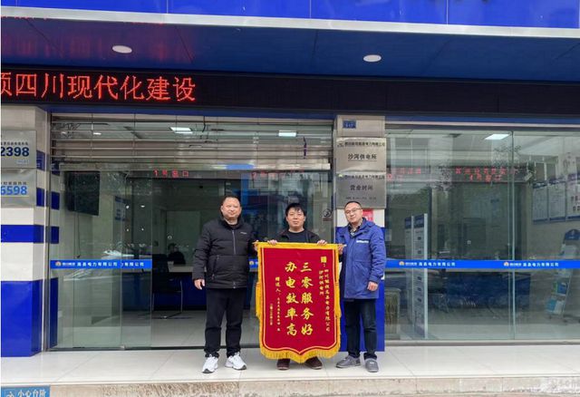 2023年2月15日,高縣靈通家庭農(nóng)場負責(zé)人到四川能投高縣電力,將一面印有“三零服務(wù)好,辦電效率高”的錦旗送到公司沙河供電所所長鄒正均手中,對沙河供電所提供的高效優(yōu)質(zhì)供電服務(wù)表示感謝。