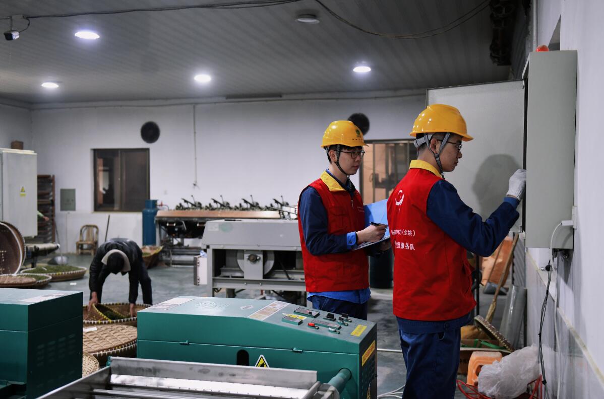 3月16日,國(guó)家電網(wǎng)浙江電力(余姚)紅船共產(chǎn)黨員服務(wù)隊(duì)來(lái)到余姚市夏巷榮夫茶廠,了解用電需求及供電質(zhì)量,對(duì)茶廠、茶園的用電線路、漏電保護(hù)器等用電設(shè)備進(jìn)行詳細(xì)的隱患排查,為春茶灌溉、采摘炒制提供充足的電力保障。
