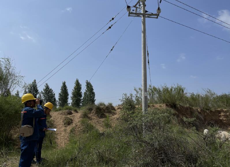 “夏天巡線,除了熱和行走不便,巡線途中,被蜜蜂蟄,被蚊子咬,都是家常便飯。”行進(jìn)過程中,供電所人員盧文龍說。從供電所出發(fā)到巡線地點(diǎn),出城區(qū),走山坡,行駛了30多分鐘后,巡線人員到達(dá)了110千伏商混變942沙龍廟線第一基桿塔,開始了當(dāng)天的徒步巡線工作。“這條線路距離市區(qū)比較遠(yuǎn),這邊的用電客戶多以農(nóng)耕為生,現(xiàn)在這個時候正是用電高峰期,所以我們要去檢查一下線路設(shè)備是否存在隱患和缺陷。”青春山供電所副所長王鵬邊走邊解釋說。盧文龍拿出紅外線測溫儀,對準(zhǔn)正在運(yùn)行的線路及金具進(jìn)行測溫并仔細(xì)記錄溫度變化情況;王鵬舉起望遠(yuǎn)鏡,仔細(xì)檢查桿塔和設(shè)備的運(yùn)行情況。在每一根電桿前,他們都要從不同角度多方位觀察,轉(zhuǎn)角桿、導(dǎo)線接點(diǎn)、拉線挨個查看。手持儀器的胳膊要在每一處檢測點(diǎn)懸停一段時間,以確保數(shù)值的準(zhǔn)確性,連續(xù)十幾根電桿下來,胳膊和手腕就開始發(fā)酸發(fā)漲......這條線路避開了人員密集區(qū),有些地方找不出一條像樣的路,車開不上去就只能靠步行前往。炎炎烈日下,王鵬和盧文龍邊查邊改,對現(xiàn)場能夠處理的隱患及時處理,不能處理的隱患記錄在冊,納入整改計劃,確保及時消除處理,并詳細(xì)記錄線路運(yùn)行情況,做好分析總結(jié)工作,確保巡視取得實(shí)效。