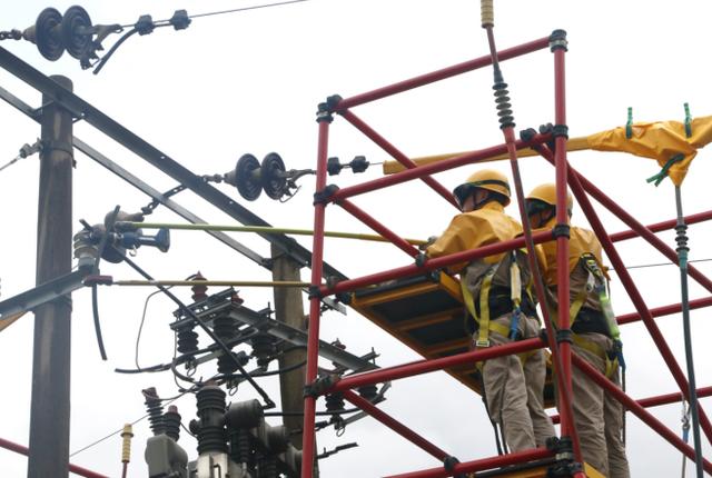 雙絕緣腳手架加旁路電纜帶電作業(yè)現(xiàn)場(chǎng) 葉凌云 攝