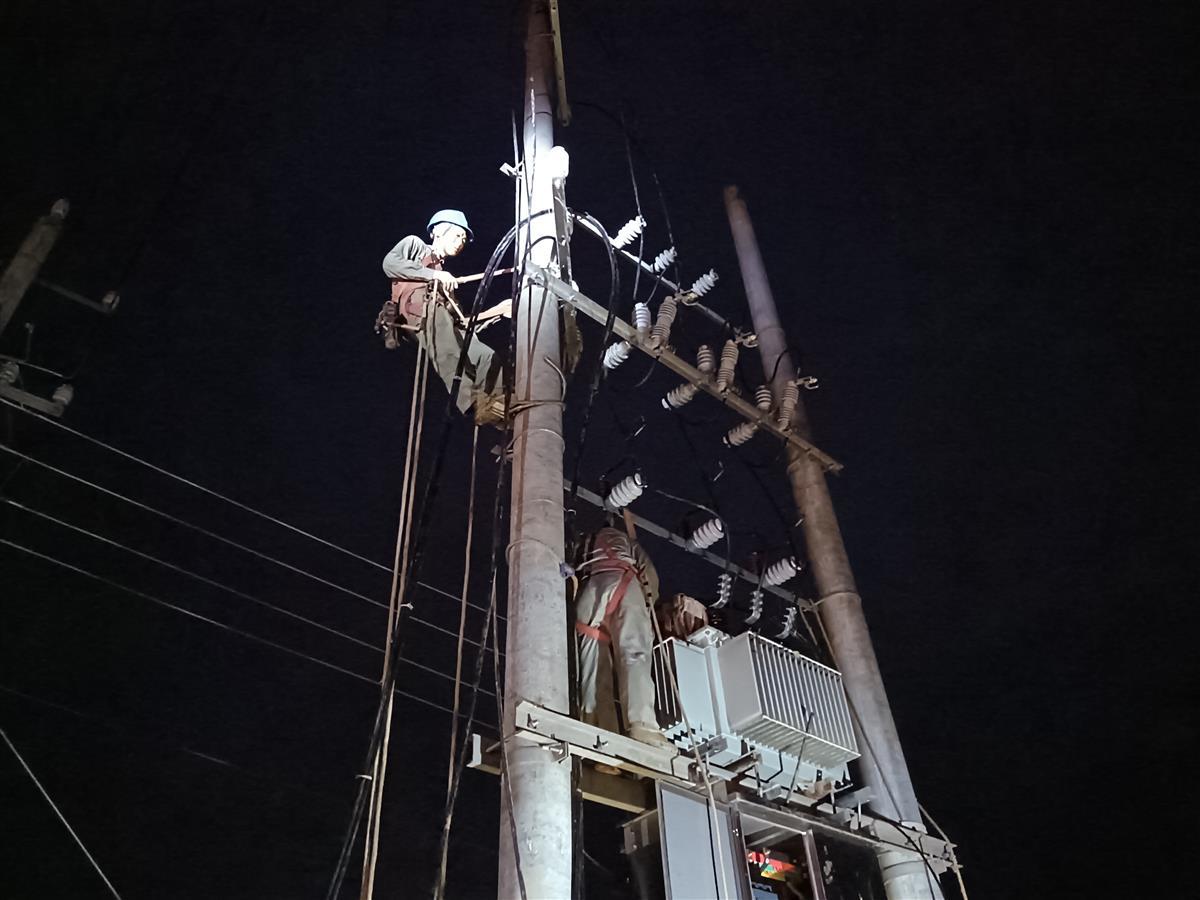 經(jīng)過5個(gè)小時(shí)的連續(xù)奮戰(zhàn),新的變壓器終于成功架設(shè)并投入使用,為60余名用戶排澇設(shè)備提供了穩(wěn)定可靠的電力支持。