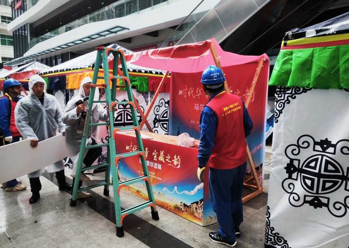隨著活動的臨近,連心橋共產(chǎn)黨員服務(wù)隊(duì)的工作人員還全力協(xié)助主辦方讓每個舞臺、每個音響設(shè)備、每個話筒、每個非遺展區(qū)通電。他們以專業(yè)的技術(shù)和高效的工作作風(fēng),確保舞臺燈光璀璨、非遺展區(qū)光彩照人。他們的努力為活動增添了絢麗的色彩,讓游客們能夠更好地欣賞到馬爾康的文化魅力。