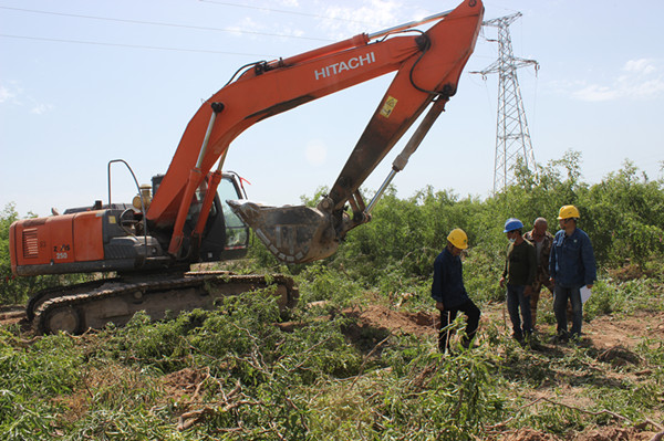 荒地所抓住工程項(xiàng)目施工中的重點(diǎn)難點(diǎn)工作開展克難攻堅(jiān),定出時(shí)間段、工作完成目標(biāo)清單、施工方案和考核辦法,做到工程項(xiàng)目能快速推進(jìn)按時(shí)完成。在新建六團(tuán)110千伏雙城變電站至國網(wǎng)220千伏變電站110千伏輸電線路施工中,因所建基塔在溫宿縣克孜勒鎮(zhèn)境內(nèi)需要簽訂征地賠償19戶,所長李建亞和公司項(xiàng)目部到當(dāng)?shù)囟啻握勁?,積極協(xié)調(diào),在“關(guān)于征收阿拉爾市“三區(qū)三州”農(nóng)網(wǎng)升級110kv變110kv線路改造項(xiàng)目用地土地及地上附著物的通告”的時(shí)間段內(nèi)對農(nóng)戶加緊測量劃定征地面積、果樹數(shù)量和賠償金額,開展簽訂一戶、開挖一戶、澆筑一戶、立塔一戶。