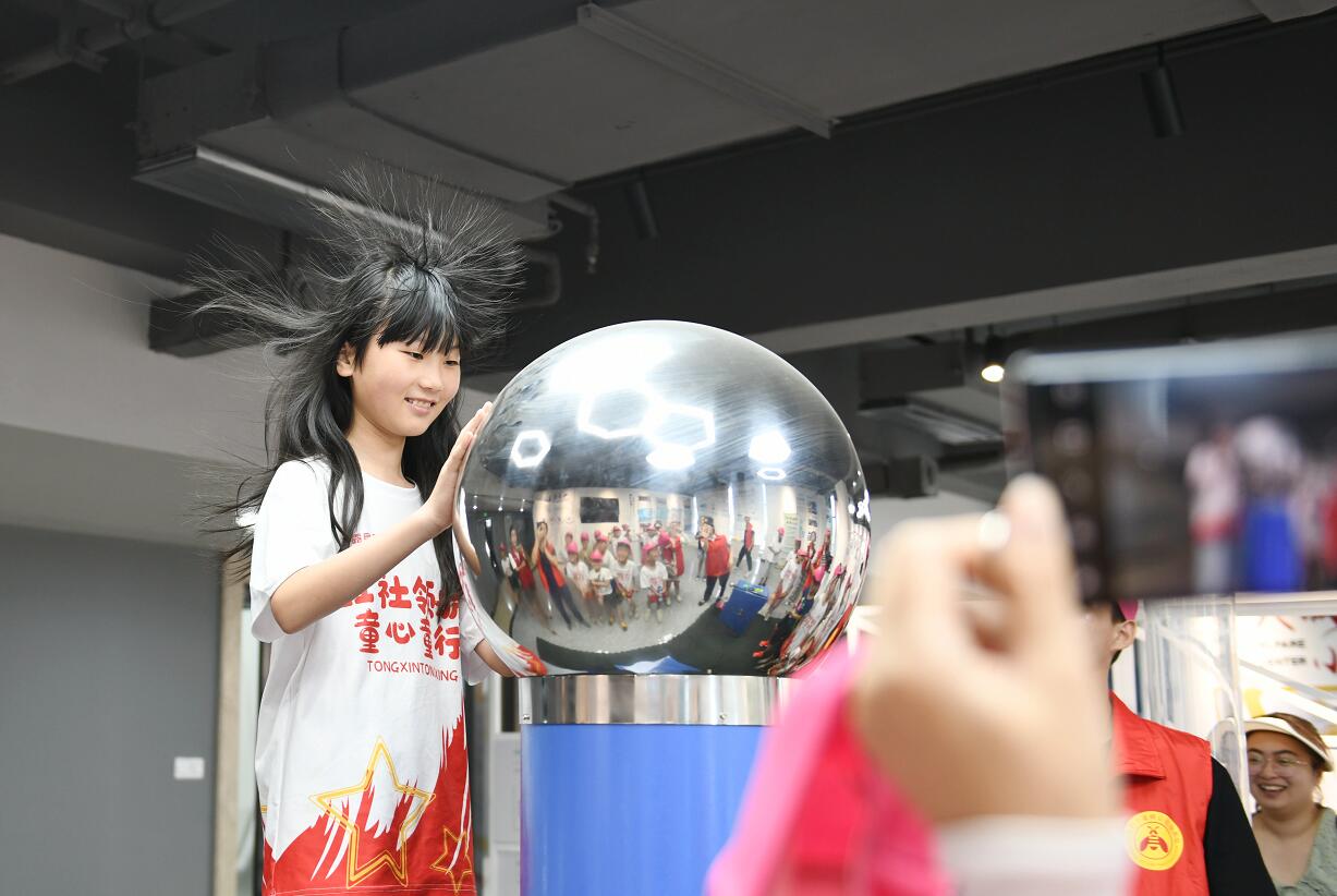 “摸一個球居然能讓頭發(fā)立起來,太神奇了。”同學們懷著既忐忑又好奇的心情,紛紛進行了靜電球體驗,連連稱奇。一個個互動游戲,讓同學們爭相體驗,樂此不疲,他們摩擦起電讓頭發(fā)起飛的樂趣,感受用自己的力量產(chǎn)生電的魅力,也讓他們對電有了一個更深入的認識。隨后,志愿者還通過提前設置的簡單電力知識互動問答,在講解并分析中,讓小朋友們進一步了解用電安全,從而養(yǎng)成節(jié)約用電的好習慣。