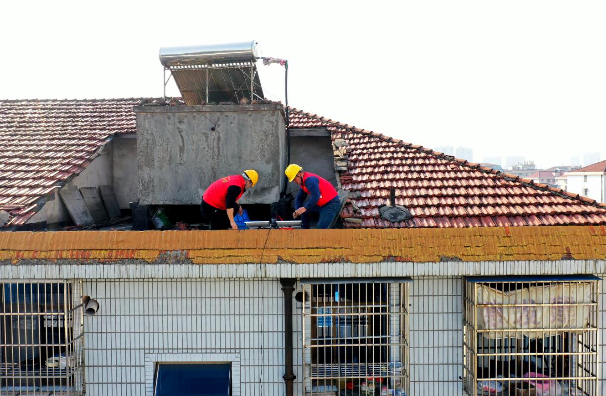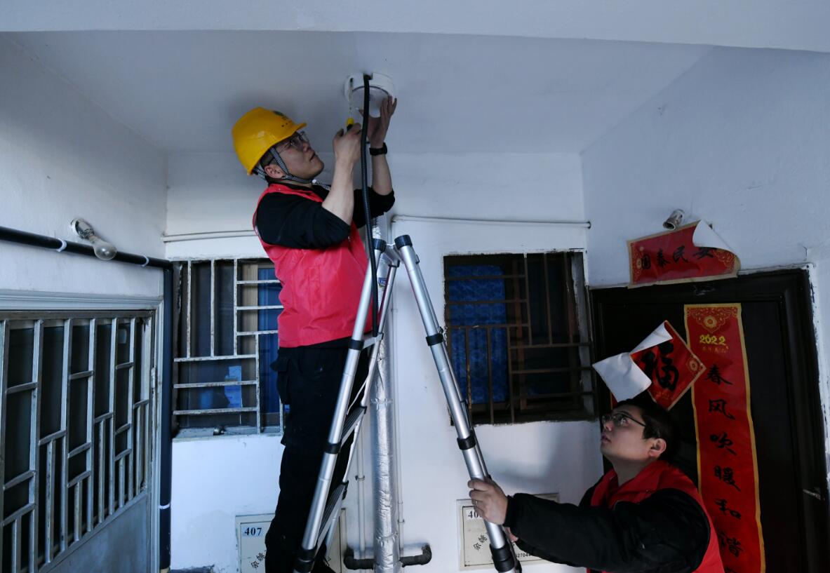 屋頂上安裝光伏板、樓道內安裝節(jié)能燈、布線后固定線卡……當天,志愿者們按照既定計劃,拿著材料以及自備工具開始對古建小區(qū)剩余樓道進行改造,3個多小時之后,每戶居民家門口的樓道燈煥然一新。“今年,我們計劃對100個樓道進行光伏改造,照亮居民的回家之路。”吳長浩說。