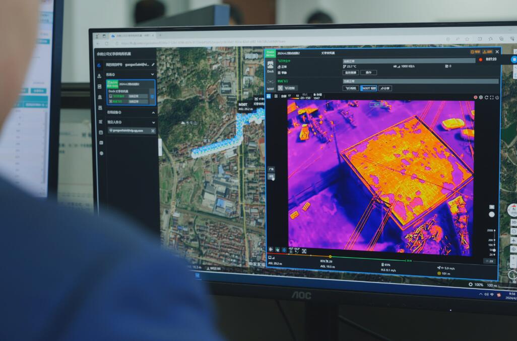 當(dāng)天,安裝在110千伏丈亭變門前的無(wú)人機(jī)巢緩緩打開,一架無(wú)人機(jī)自動(dòng)升空,沿著設(shè)定好的路線徑直飛去。同時(shí),無(wú)人機(jī)拍攝的畫面成功回傳到公司運(yùn)檢部電腦平臺(tái),通過“實(shí)景”和“紅外”功能切換,可以直接監(jiān)測(cè)到是否有起火點(diǎn),以“機(jī)器代人”極大提高了火災(zāi)隱患的排查效率。