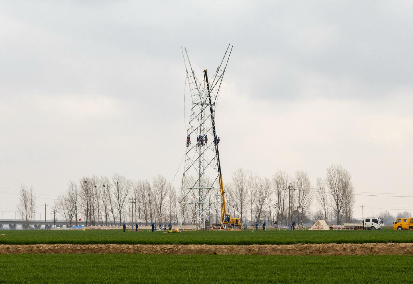 3月12日,在河南滑縣白道口鎮(zhèn)后吾旺村,太陽剛出來,麥苗上還掛著晶瑩的露珠。走在麥隴間有種踏春的喜悅,露珠也瞬間浸透了腳上的鞋??聪蚰沁厖s是另一番景象,新建220千伏電力線路跨越高鐵工程正在緊張實施中?,F場國網滑縣供電公司的施工人員,早已開始了組立鄭濟鐵路(滑縣段)第75號鐵塔,等76號鐵塔也組裝完后,73號鐵塔與76號鐵塔導線放通,鄭濟鐵路(滑縣段)全線路貫通。為下一步鄭濟高鐵聯(lián)調聯(lián)試、試車及最后投入運營提供可靠電力支撐。