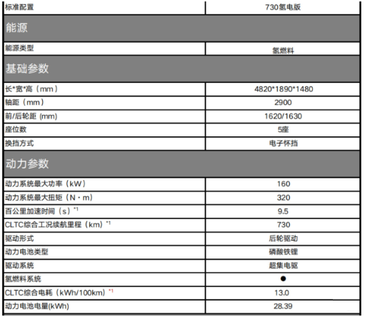 氫電版續(xù)航里程這里也標(biāo)注的很清楚,它是一款續(xù)航能達到730km的氫能源電動車,車身尺寸和純電及增程版本保持不變。同樣也采用了后驅(qū)布局,并且匹配和增程式車型一樣的28.39kWh動力電池,換句話說就是氫燃料版車型將增程式車型用于發(fā)電的發(fā)動機替換為用于發(fā)電的氫燃料。而氫燃料相比發(fā)動機而言最大的優(yōu)勢則在于排放更環(huán)保、噪音控制更好,以及未來的使用成本上。