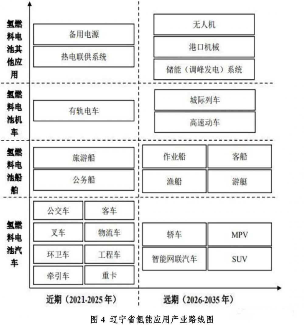 近期(2021-2025年),重點發(fā)展燃料電池公交車、客車、物流車、環(huán)衛(wèi)車、重卡、牽引車、工程作業(yè)車、叉車等商用車,前瞻布局乘用車,推動燃料電池整車供氫系統(tǒng)、動力系統(tǒng)以及電機系統(tǒng)、電控系統(tǒng)、電驅(qū)系統(tǒng)的研發(fā)與制造。遠期(2026-2035年),重點發(fā)展燃料電池轎車、SUV/MPV等乘用車及智能網(wǎng)聯(lián)燃料電池汽車。