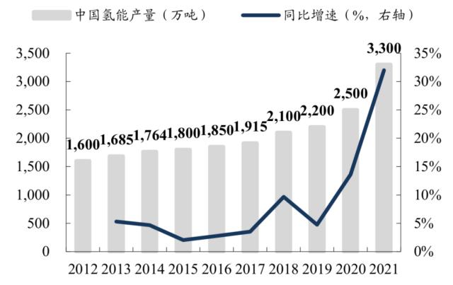 而自2020年“雙碳”目標(biāo)提出以來,我國氫能產(chǎn)業(yè)發(fā)展加速,氫能產(chǎn)量由2017年的1915萬噸增長至2021年的3300萬噸,5年CAGR達(dá)14.6%,2021年32%的同比增速更是創(chuàng)下新高,目前已是第一大制氫國。并且氫儲能2023年就是產(chǎn)業(yè)化元年,長周期氫儲能項目建設(shè)還會加速綠氫生產(chǎn)。