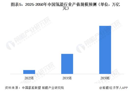 根據(jù)中國氫能聯(lián)盟資料,預(yù)計到 2050 年,中國氫能產(chǎn)業(yè)產(chǎn)值規(guī)模有望達到 12 萬億元,將成為引領(lǐng)經(jīng)濟發(fā)展的新增長極。