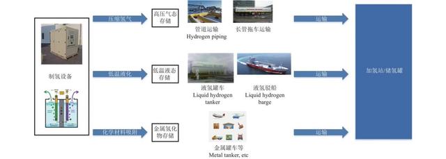 這一方面顯示出我國氫能供給的巨大潛力,同時也意味著產業(yè)鏈各環(huán)節(jié)上對氫儲運的更大需求。氫能產業(yè)鏈分為上游制氫、中游儲運氫以及下游氫能應用,涉及環(huán)節(jié)較多、應用領域廣泛。其中,氫儲運將制得的氫氣進行儲存,再通過交通工具運輸至下游加氫站、化工企業(yè)等應用領域,是連接上游供給和下游需求的關鍵,是整個產業(yè)鏈環(huán)節(jié)中必不可少的一環(huán)。