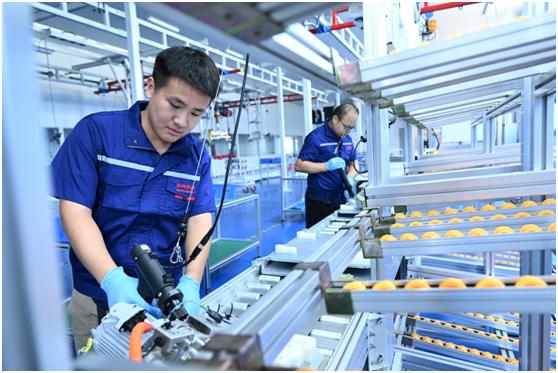 河南國(guó)鴻氫能科技有限公司生產(chǎn)車間內(nèi),工人正在生產(chǎn)線上忙碌。僧少琴攝