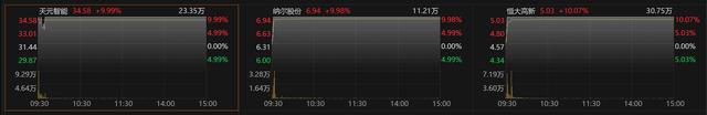 多重利好驅(qū)動氫能板塊拉升,擁有水制氫設(shè)備的天元智能收盤錄得6連板,擬與新視揚(yáng)共同設(shè)立江西恒大綠能科技有限公司主要開展氫能源等新能源材料業(yè)務(wù)的恒大高新、子公司旗下具有氫能源領(lǐng)域核心零部件等項目的納爾股份雙雙漲停。