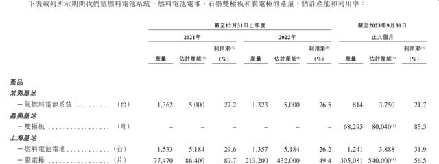 重塑能源也“預(yù)留”了充足的產(chǎn)能,報(bào)告期內(nèi),其氫燃料電池系統(tǒng)產(chǎn)能利用率分別為27.2%、26.5%及21.7%,燃料電池電堆產(chǎn)能利用率分別為29.6%、26.2%及31.9%,其余產(chǎn)品各期產(chǎn)能利用率均未超過(guò)90%。