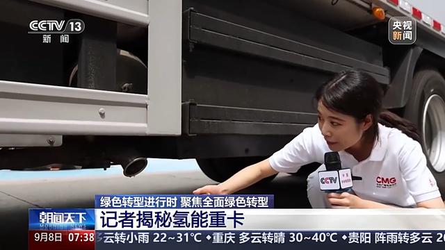 總臺(tái)央視記者 張叢婧:這個(gè)氫能重卡最大的不同就在于,您看在車(chē)頭和貨箱之間,有一個(gè)這樣的大箱子,里面裝的就是氫燃料。