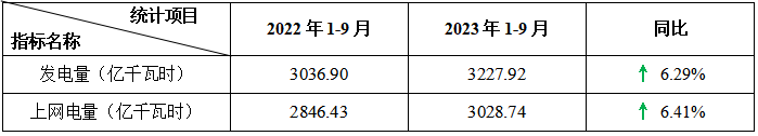 表2:2023年1-9月核電電力生產指標統(tǒng)計表