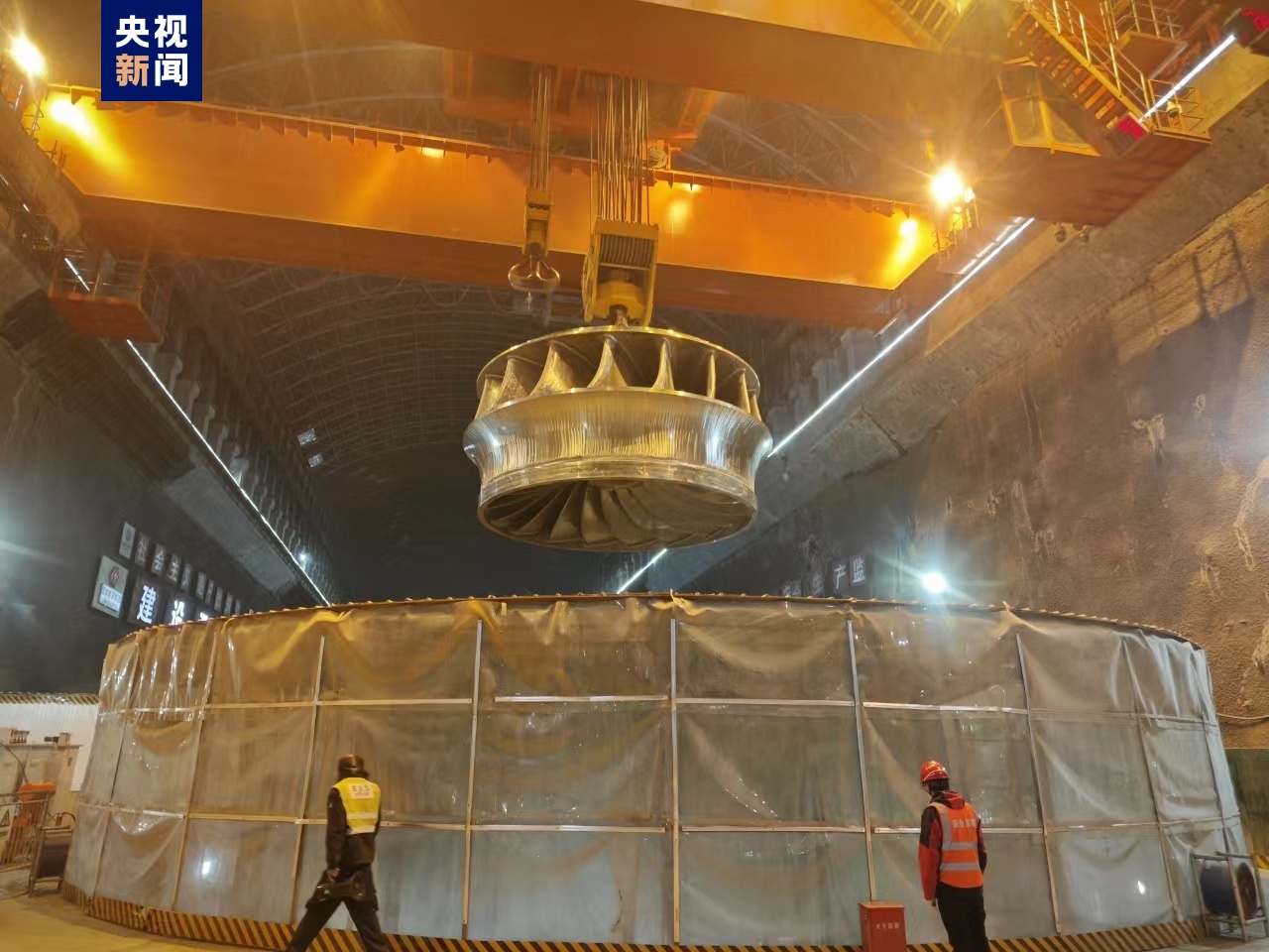 作為整個(gè)機(jī)組的核心,轉(zhuǎn)輪將水能轉(zhuǎn)換為軸的旋轉(zhuǎn)機(jī)械能,并通過(guò)水輪機(jī)主軸傳遞給發(fā)電機(jī)主軸及轉(zhuǎn)子,決定著水輪機(jī)的過(guò)流能力、水力效率及機(jī)組運(yùn)行的穩(wěn)定。此次轉(zhuǎn)輪吊裝各環(huán)節(jié)無(wú)縫銜接,吊裝精準(zhǔn)安全就位。(毛保武 馬志原)