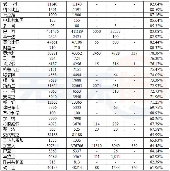 美國最強,2015年占全球41%的份額,其次是巴西。美國和巴西占全球總量的65%。