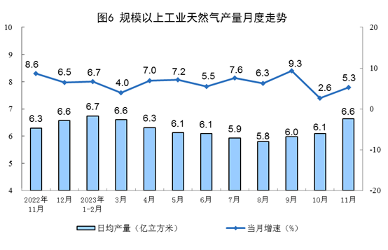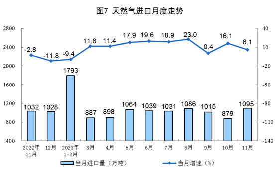 1—11月份,生產(chǎn)天然氣2096億立方米,同比增長6.0%。進(jìn)口天然氣10740萬噸,同比增長8.5%。