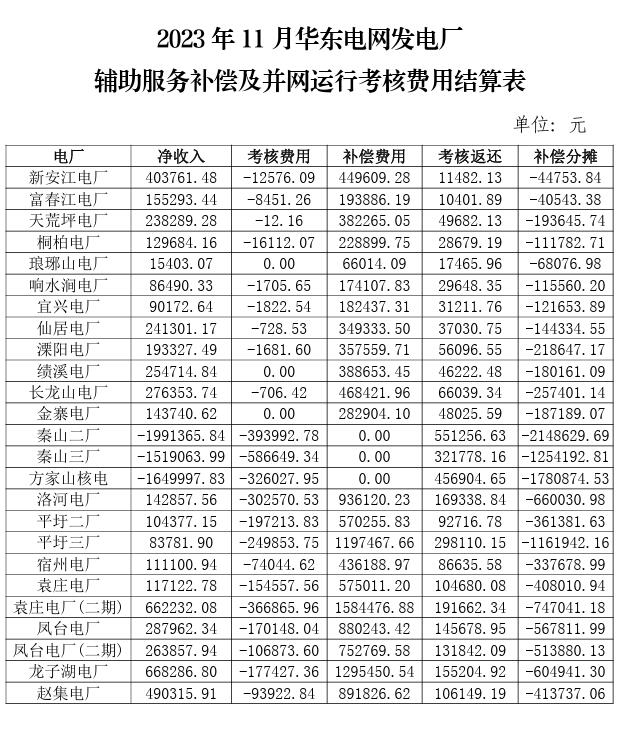 附件:2023年10-12月華東電網(wǎng)發(fā)電廠輔助服務(wù)補償及并網(wǎng)運行考核費用結(jié)算表。