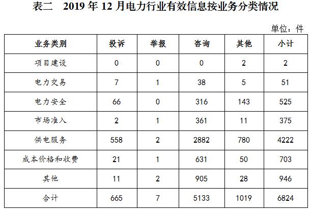 2019年12月,國家能源局12398熱線共收到有效信息8419件,環(huán)比增加15.08%,同比增加4.67%。