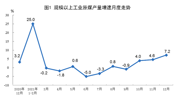 原煤生產(chǎn)繼續(xù)加快,進(jìn)口由增轉(zhuǎn)降。隨著增產(chǎn)保供政策持續(xù)推進(jìn),12月份,生產(chǎn)原煤3.8億噸,同比增長7.2%,增速比上月加快2.6個百分點,比2019年同期增長10.7%,兩年平均增長5.2%,日均產(chǎn)量1241萬噸;進(jìn)口煤炭3095萬噸,同比下降20.8%。