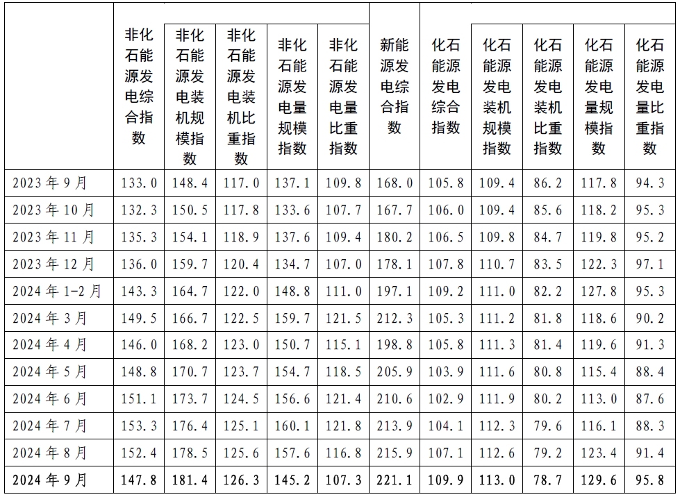 9月,化石能源發(fā)電綜合指數(shù)為109.9,比2020年基期增長(zhǎng)了9.9%,同比增長(zhǎng)3.9%。其中: